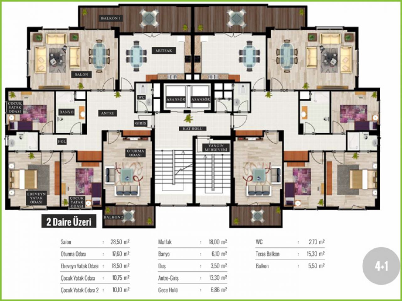 2 Etap : Zemin + 11 Kat 2 Daire Üzeri 9415 m2 Kapalı Alan olarak 30.12.2017 Yılında 48 Daire Teslim Edildi.